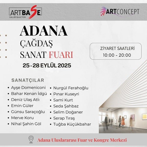 Bu yıl 25 – 28 Eylül 2025 tarihlerinde Adana Uluslararası Fuar ve Kongre Merkezi’nde gerçekleştirilen Artconcept - Çağdaş Sanat Fuarı’nda Artbase Gallery farklı disiplinlerden sanatçılar ile sanat izleyicisiyle buluştu.