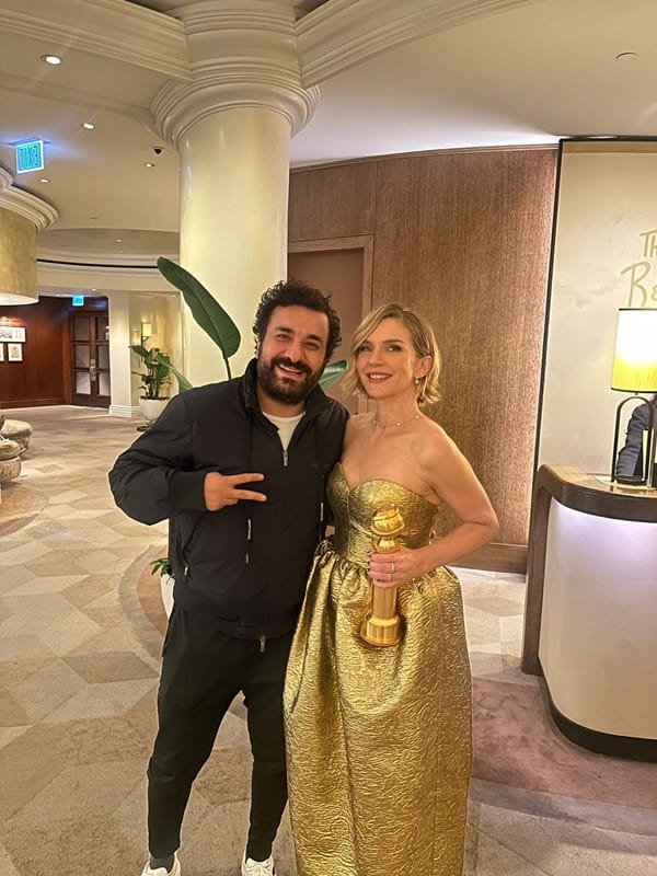 Hasan Can Kaya, Beverly Hills’de otel lobisinde otururken, Golden Globe ödüllerinde ‘En İyi Kadın Oyuncu’ ödülünü alan, Pluribus dizisinin yıldızı RheaSeehorn’la karşılaştı.