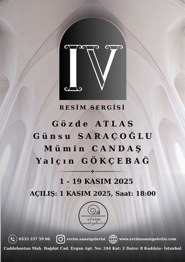Sanat eleştirmenleri ve koleksiyonerler kadar, sanata ilgi duyan herkesi etkileyecek bir seçki sunan "IV" Karma Sergisi, 1-19 Kasım 2025 tarihleri arasında Evrim Sanat Galerisi'nin yeni adresinde ziyaret edilebilecek.