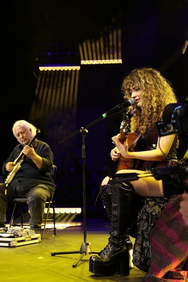 Sena Şener, kısa sürede kaleme aldığı ve dinleyicilerin kalbinde yer eden şarkılarıyla, Harbiye’deki bu özel gecede izleyicilerine unutulmaz bir müzikal yolculuk yaşattı. Benzersiz vokali, özgün tarzı ve yüksek enerjili sahne performansıyla dinleyicilerini mest eden sanatçıya sahnede Tuna Kiremitçi, Hakan Şener, Erkan Oğur, Güneş, Keremcem ve Umut Kaya gibi önemli isimler eşlik etti.
