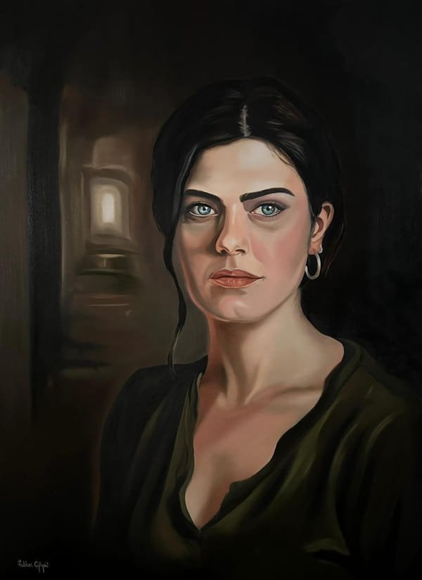 Bunlardan ilki, fotoğraf referansı Gilcan Mete Delibay’a ait olan ve güçlü bakışıyla dikkat çeken “REGARDEZ-MOI (Look at me – Bak bana!)” (2026) oldu.