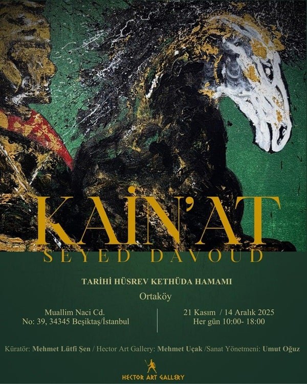 Tarihi Hüsrev Kethüda Hamamı, çağdaş sanatın büyüleyici bir evrene dönüştüğü özel bir sergiye ev sahipliği yapıyor. Kültür ve sanat dünyasının merakla beklediği “Kain’at” sergisi, Seyed Davoud’un yeni eserlerinden oluşan kapsamlı bir seçkiyle 20 Kasım 2025 Perşembe günü saat 19.00’da kapılarını açıyor.