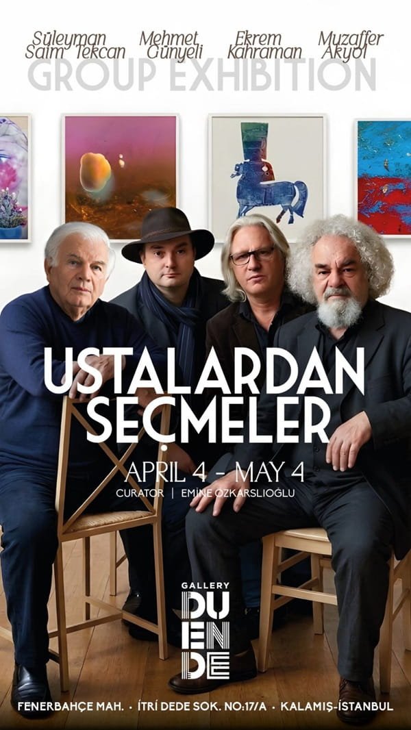Gallery Duende’ de Küratör Emine Özkarslıoğlu tarafından düzenlenen bu özel sergi; Türkiye görsel sanatlar tarihine yön veren dört dev ismi aynı çatı altında buluşturan "Ustalardan Seçmeler" adı altında 4 Nisan – 4 Mayıs 2026 tarihleri arasında izlenebilecek.
