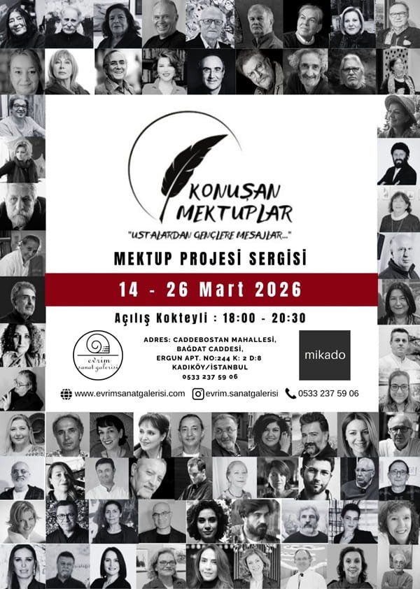Farklı disiplinlerden sanatçı, yazar ve düşünce insanlarının kaleme aldığı mektuplardan oluşan “Konuşan Mektuplar: Ustalardan Gençlere Mesajlar” mektup projesi, kuşaklar arasında deneyim, birikim ve yaşam bilgeliğini aktarmayı amaçlıyor. Daha önce Ankara Mustafa Ayaz Müzesi ve Mersin MTSO Sanat Galerisi’nde sergilenerek büyük ilgi gören proje, İstanbul’da sanat, düşünce ve deneyimi bir araya getiren özgün bir buluşma alanı sunuyor. Sanatseverler, hem mektupları okuyarak hem de QR kodlarla dinleyerek ustaların genç kuşaklara bıraktığı düşünsel mirasa yakından tanıklık edebiliyor. Projeyi hayata geçiren paydaşlar arasında Bülent Ketenci, Aydın Boru, Evrim Sanat Galerisi, mikado İletişim ve Doğru Adımlar Danışmanlık bulunuyor.